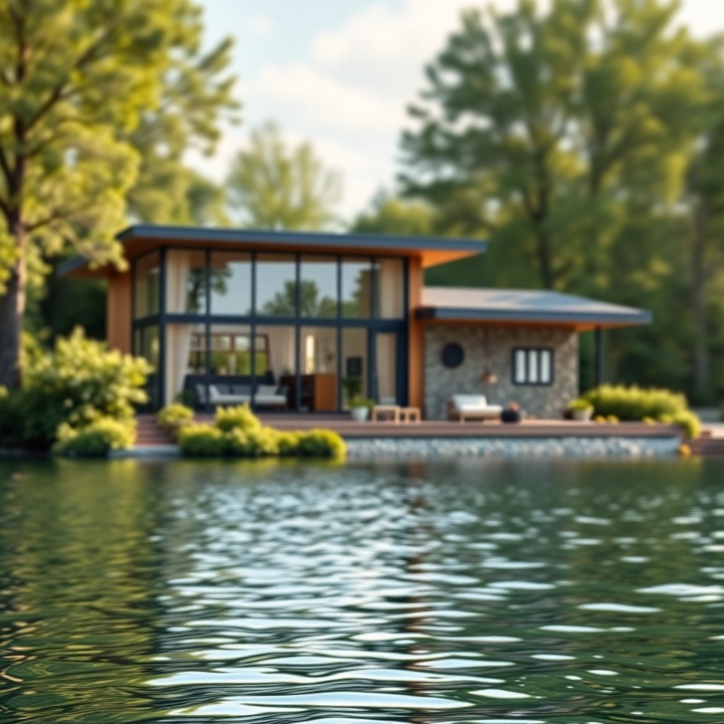 Современный дом у озера: уют, стиль и природа в гармонии